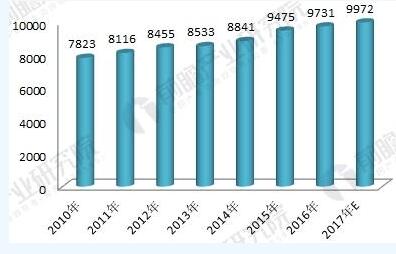 圖表2:2010-2017年中國(guó)餐廚垃圾產(chǎn)生量規(guī)模趨勢(shì)圖(單位:萬(wàn)噸,%)