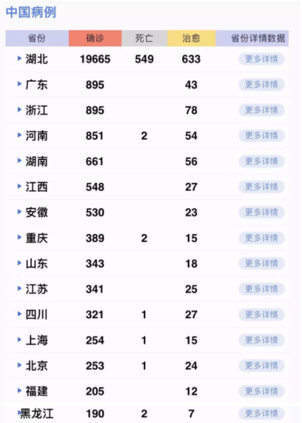 31個(gè)?。ㄗ灾螀^(qū)、直轄市)和新疆生產(chǎn)建設(shè)兵團(tuán)累計(jì)報(bào)告確診病例28018例,累計(jì)治愈出院1153例,隔離治療26302例(其中重癥病例3859例),累計(jì)死亡病例563例,現(xiàn)有疑似病例24702例。累計(jì)追蹤到密切接觸者282813人,尚在醫(yī)學(xué)觀察的密切接觸者186354人。