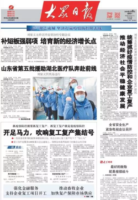 在嚴格防控企業(yè)員工防疫工作的同時,泰安市投入所有資源,達到了防控物資生產(chǎn)企業(yè)開足馬力全負荷生產(chǎn)的目標。每日調(diào)度重點17家防疫物資生產(chǎn)企業(yè),12種物資,隨時掌握庫存、產(chǎn)量、原料等情況。