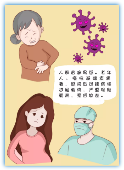 老年人、慢性基礎(chǔ)疾病者,感染后可能病情進(jìn)展更快,嚴(yán)重程度更高,預(yù)后較差。