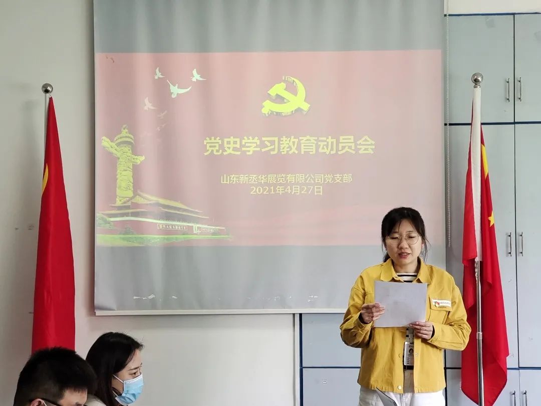 4月27日,丞華展覽黨支部組織召開黨史學(xué)習(xí)教育動員會,深入學(xué)習(xí)貫徹習(xí)近平總書記在黨史學(xué)習(xí)教育動員大會上的重要講話精神,認(rèn)真落實《齊魯軟件園綜合黨委開展黨史學(xué)習(xí)教育實施方案》的具體要求。公司全體黨員、預(yù)備黨員及入黨積極分子20余人參會。黨支部副書記侯兆芳主持本次會議。