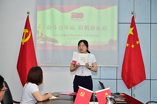 紅色華誕,光輝歷程。7月1日,是黨的生日,今年恰逢中國共產(chǎn)黨成立100周年,山東新丞華展覽有限公司黨支部通過舉辦多個(gè)活動(dòng)慶祝黨的百年華誕。公司全體黨員、預(yù)備黨員和入黨積極分子30余人參加了此次活動(dòng)。