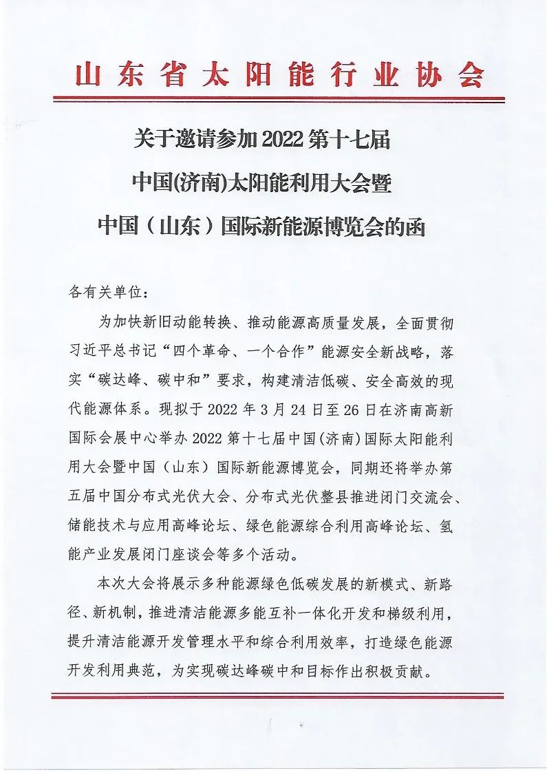 雙碳引領(lǐng),綠色發(fā)展!2022第十七屆中國(guó)(濟(jì)南)太陽(yáng)能利用大會(huì)3月24日將在濟(jì)南盛大開(kāi)幕!