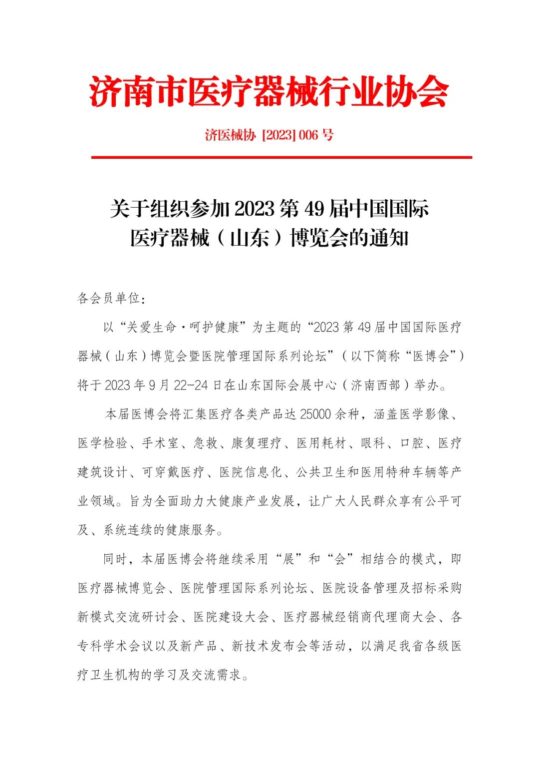 關(guān)于組織參加2023第49屆中國國際醫(yī)療器械(山東)博覽會的通知