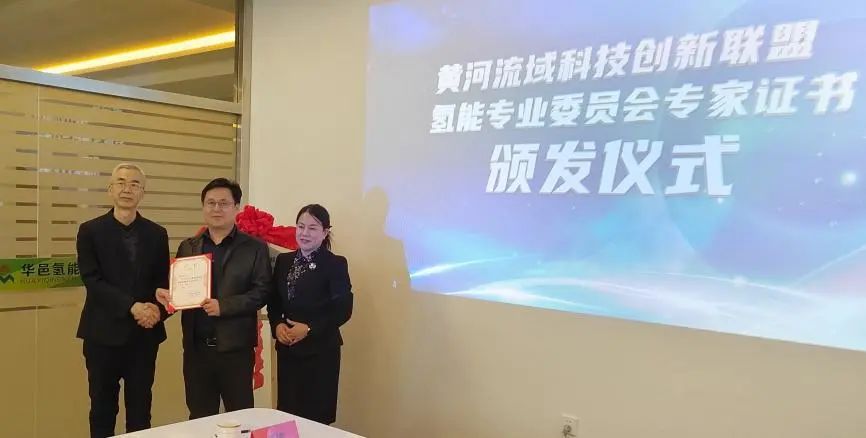 黃河流域科技創(chuàng)新聯(lián)盟氫專委副秘書長張文良、侯志紅為周飛鯤博士頒發(fā)了黃河流域科技創(chuàng)新聯(lián)盟氫能專委會(huì)專家證書。